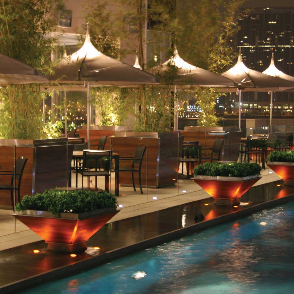 Old-world design and state-of-the-art components coexist in this beautifully functional umbrella. The Tuuci Ocean Master Pagoda has the patent-pending, gas-piston, self-tensioning system, ensures the canopy’s skin-tight fit over its revolutionary struts.