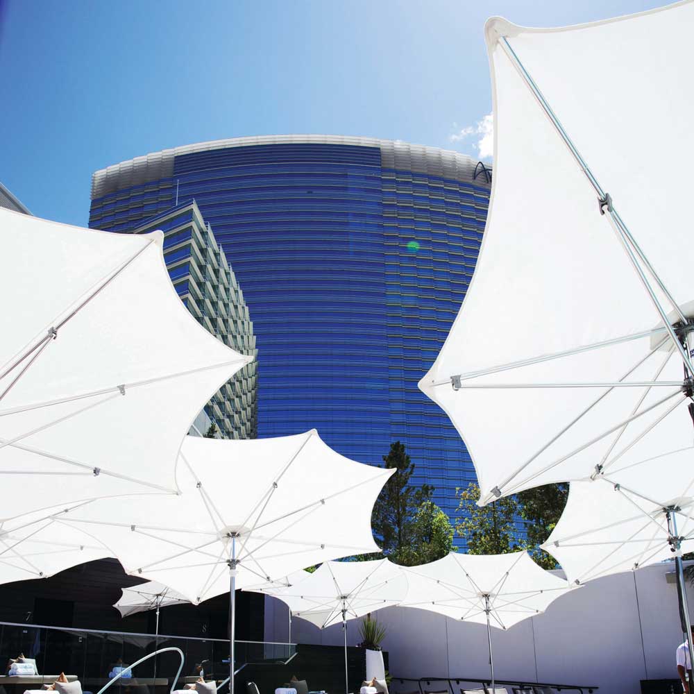 The Razor’s striking asymmetrical construction features a razor-like, self-tilting canopy profile. It’s now possible to enjoy all-day shade with this exquisitely designed master piece.